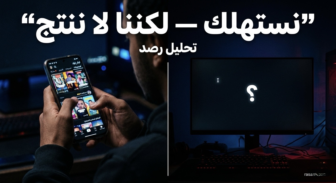 شاب في القاهرة يقضي 6 ساعات يومياً على تيك توك. شابة في الرياض تتابع 340 حساباً على إنستغرام. رجل في الدار البيضاء يشاهد يوتيوب حتى الفجر. ثلاثتهم يستهلكون — ولا أحد منهم ينتج شيئاً يبقى.
